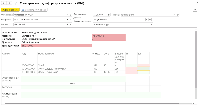 В подсистему хлебобулочного и кондитерского производства добавлен документ "Заказ покупателя (ХБК)", который предназначен для формирования перечня номенклатуры, который клиент намерен приобрести. На основании данных заказов формируется потребность в производстве поставляемой клиентам продукции.
