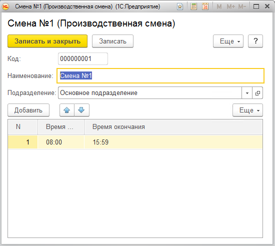 Для использования смен производства используется справочник "Смены (ХБК)". В справочнике определяется время работы смены с возможностью уточнения до подразделения.