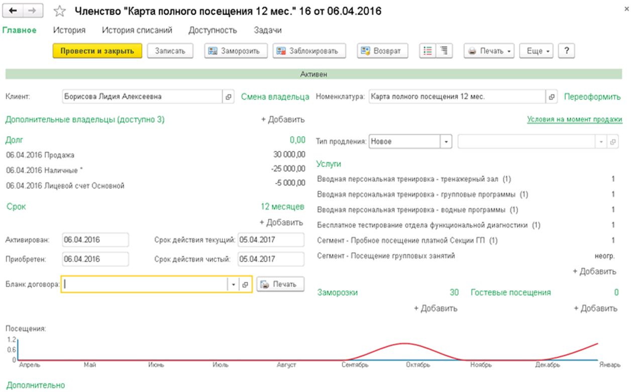 Автоматизация учета посещений, абонементов, продаж и услуг