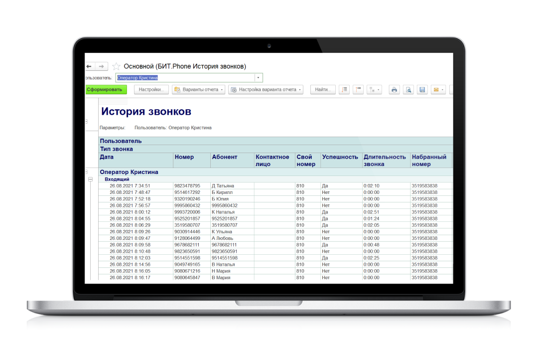 • Запись телефонных разговоров и контроль работы специалистов call-центра