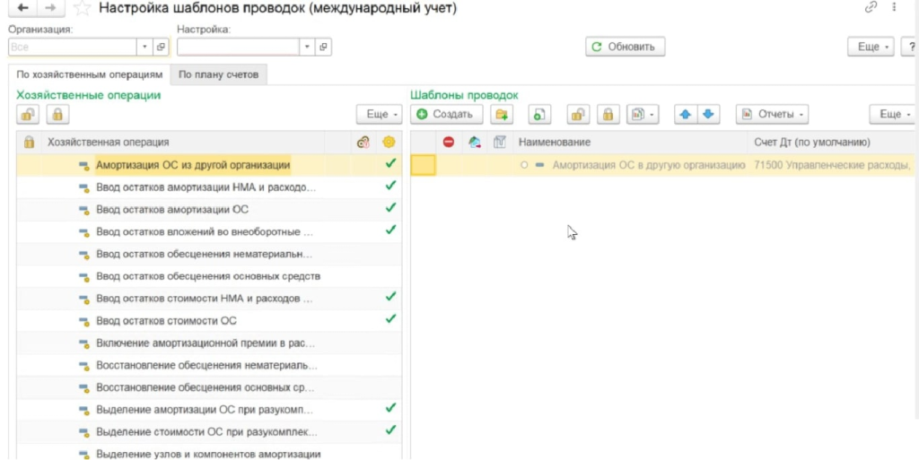Для операций, где учетные принципы РСБУ и МСФО совпадают или близки, используется автоматическая трансляция. Для участков, где различия существенны, используются специализированные документы международного учета. К таким участкам относятся, в частности, основные средства, нематериальные активы, аренда, запасы, финансовые инструменты и отложенные налоги.