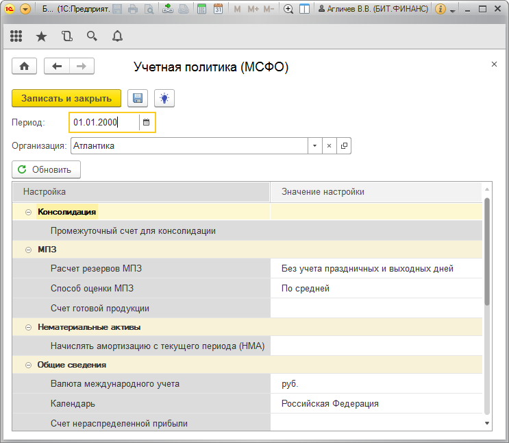 Регистр сведений «Учетная политика (МСФО)» в БИТ.ФИНАНС