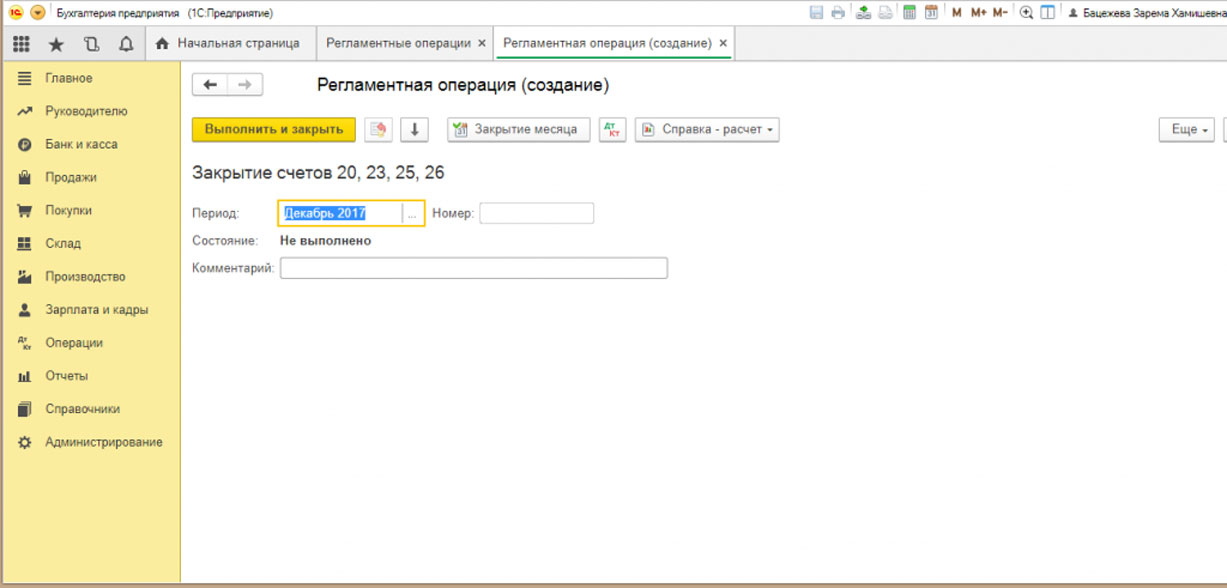Расчет фактической себестоимости для готовой продукции в системе 1С осуществляется по закрытию месяца проведением регламентной операции.Чтобы выполнить это действие, необходимо нажать кнопку«Создать» в разделе «Регламентные операции». После этого будет сформирован перечень доступных операций: «расчет налогов», «амортизация основных средств» и пр. Следует выбрать пункт, который предлагает закрыть счета 20, 23, 25, 26. По дебету счета «Основное производство» 20 отражаются затраты, отнесенные на производство, а по кредиту - готовая продукция, вышедшая из производства. Получаемая между кредитом счета 20 и дебетом разница и является фактической себестоимостью изготовленной конечной продукции.