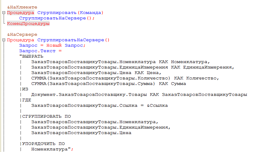Каждый заказ клиента добавляет в табличную часть документа заказ товаров поставщику заказанные товары. Но для получения сводного списка заказанных товаров, необходимо их сгруппировать с помощью процедуры.