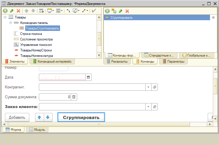 Напишем обработчик события при изменении реквизита Заказ клиента.